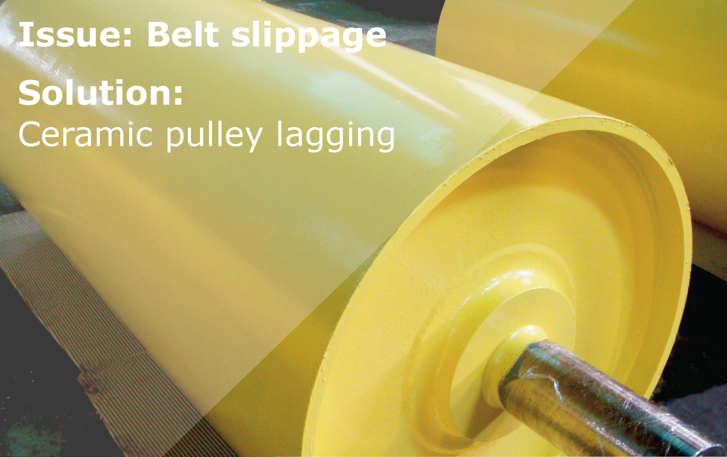 The ceramic pulley lagging sheds water from belt to improve track, thereby minimizing material loss.
