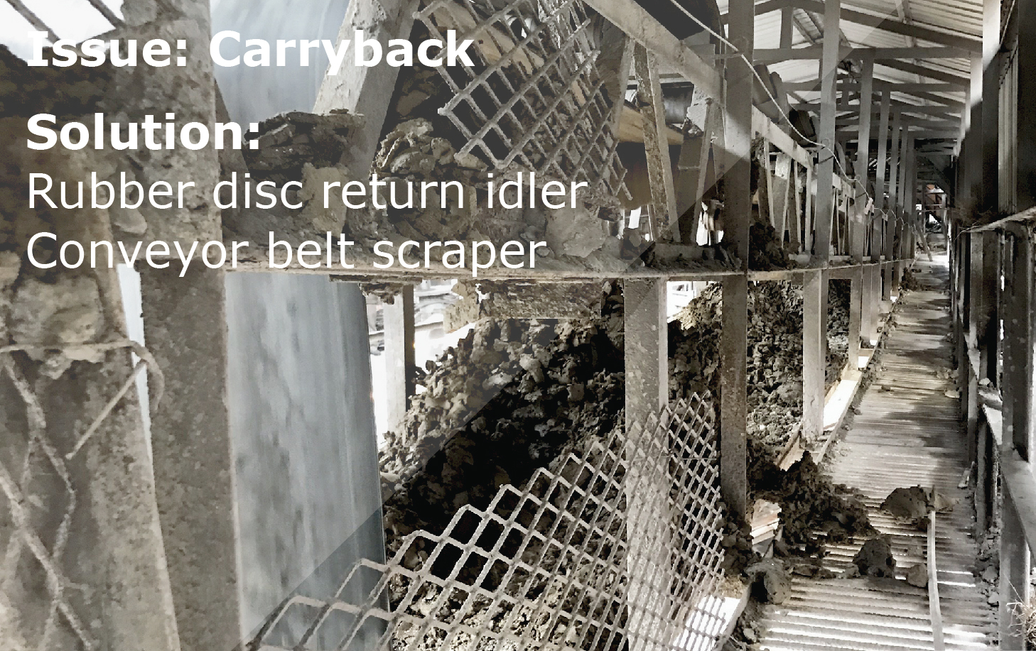 Carryback adheres on the belt, which causes serious material accumulation, residue build-up return rollers and belt mistracking. In addition, belt mistracking or belt-edge damage results in unscheduled downtime.