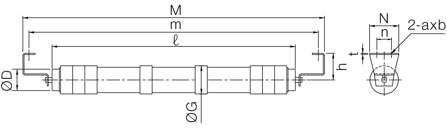 | Model | BW | ØD | ØG | ℓ | m | M | n | N | h | t | axb |