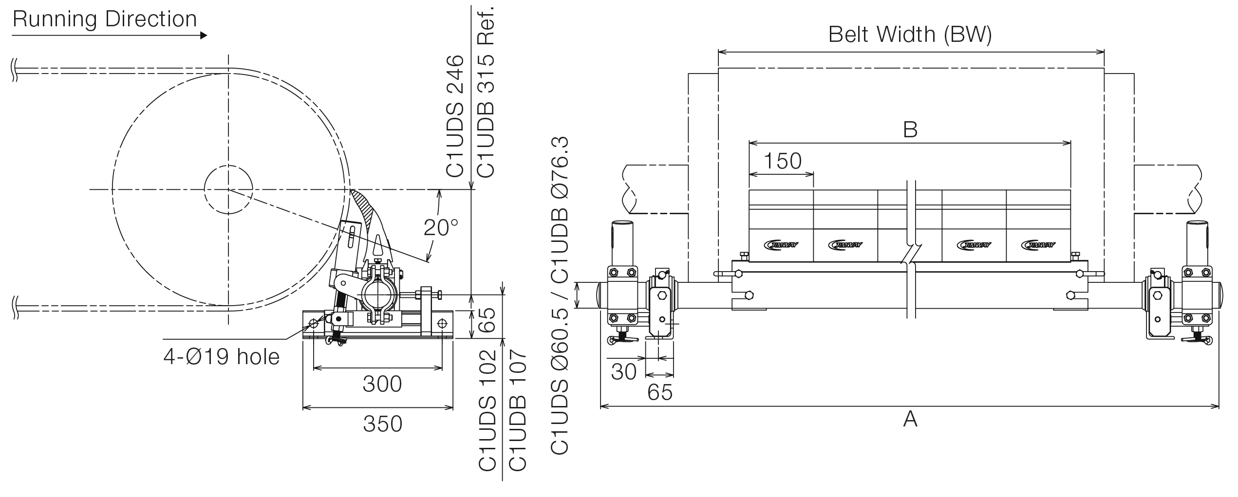 Performing a visual inspection for wear, Jimway's C1UD belt cleaner blade with bi-color design ensures workers easily to inspect when replace worn blades. The another main feature of this belt cleaner is the tensioner with blade-to-belt pressure inspection window, which makes timely and effective adjustments to increase scraping performance. Carryback adheres to the belt, which causes serious material accumulation and residue build-up return rollers. Therefore, belt mistracking or belt-edge damage results in unscheduled downtime.––––––––––––––––––––––––––––––––––––––