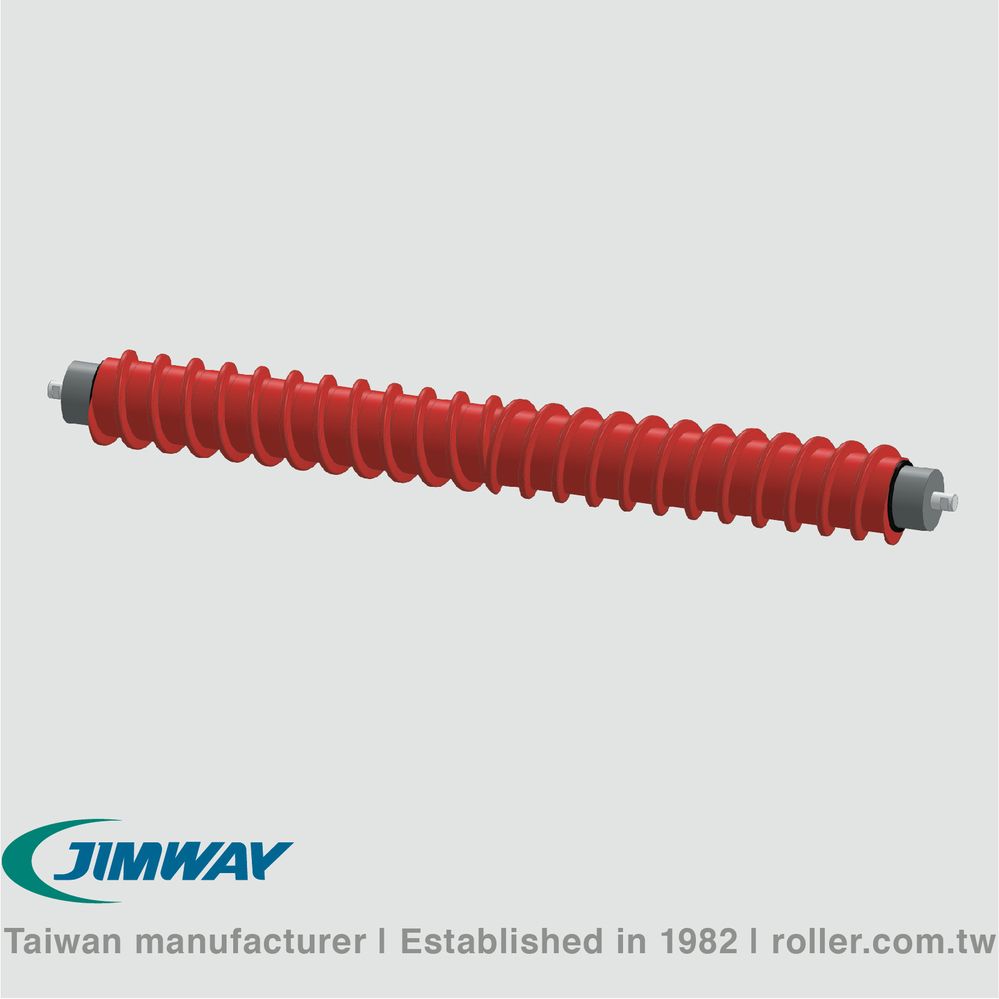 This self-cleaning roller has utilizing durable PU discs and operates in specific direction to limit belt wandering. Materials build-up on the rollers, which causing the belt to mistrack/flap and material spillage that the rollers fails prematurely. Jimway's maintenance-free spiral return roller reduces downtime due to less carryback or less belt mistracking. The non-stick properties of the PU material ensures that unwanted wet sticky material won't adhere the roller and extends the roller service life.