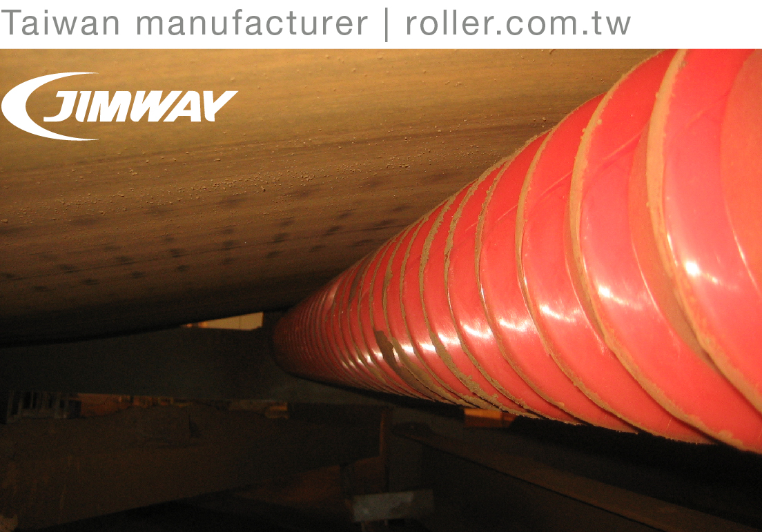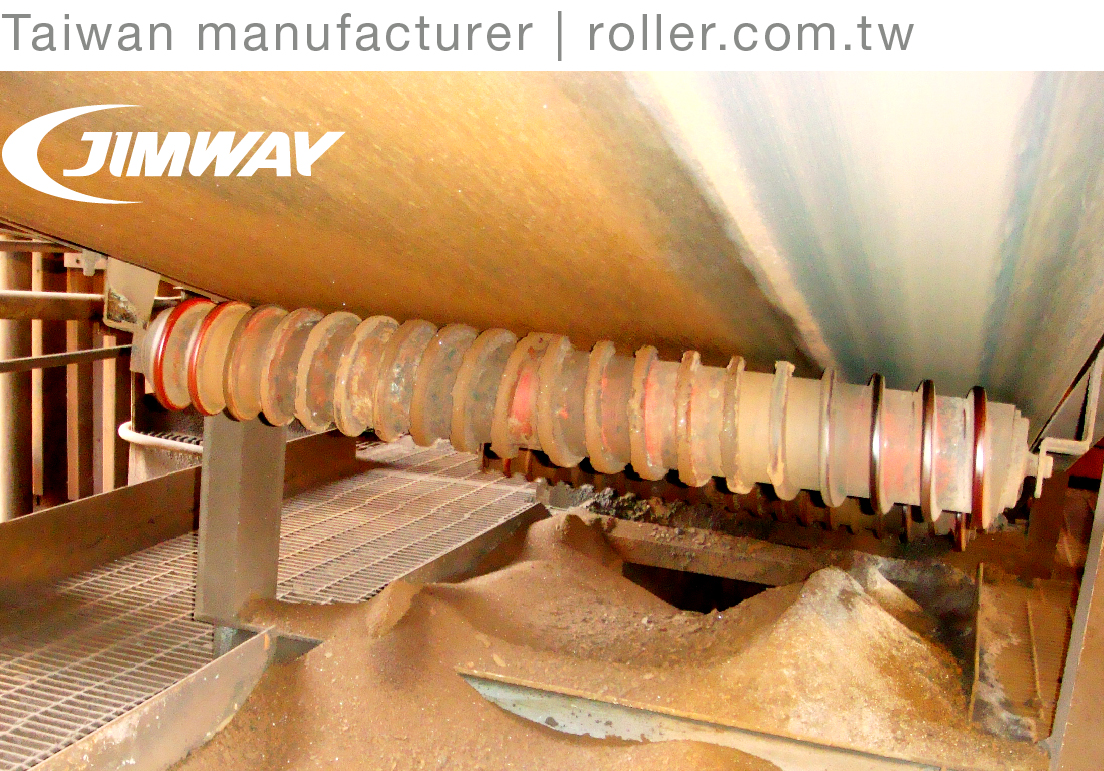With Jimway's belt cleaners, spiral return rollers can prevent material build-up and decrease the material accumulation more efficiently, especially on wet/sticky material application.