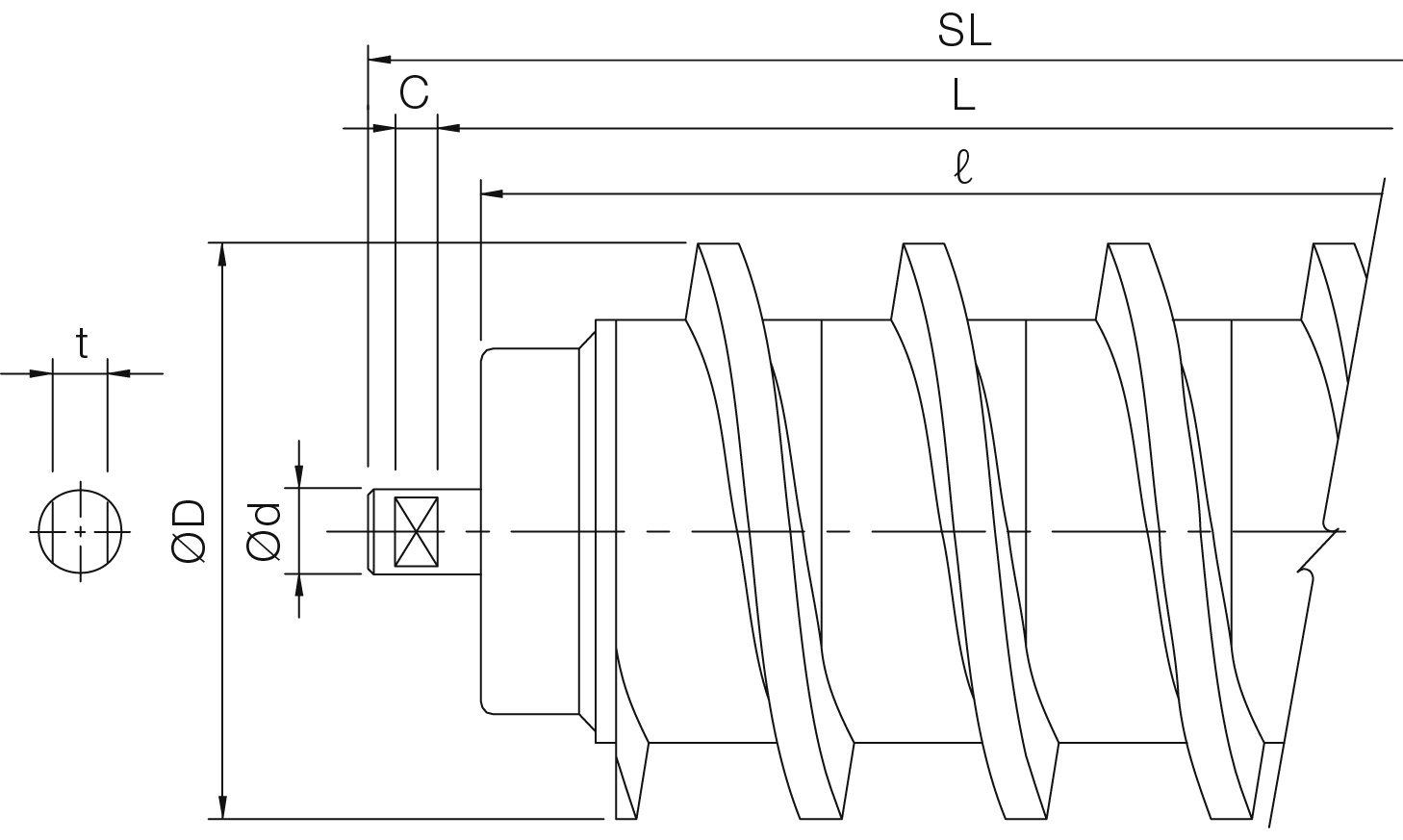 | Model | BW | ØD | ℓ | L | SL | C | t | Ød | Bearing No. |