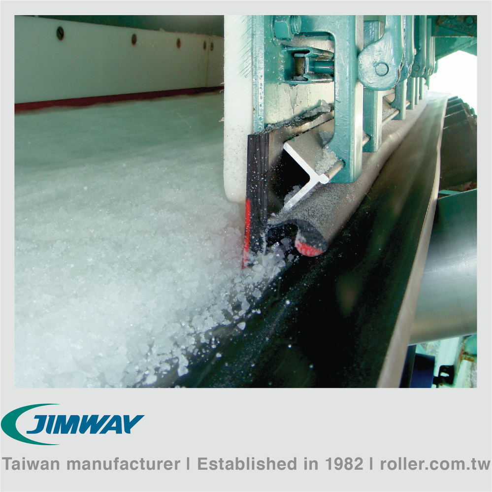 Jimway's Patented Skirt Rubber provides service lifetime expansion and an effective solution by preventing material spillage, dust leakage, and belt damage. The 1st layer keeps the 3~5mm distance from the belt preventing material spillage. The 2nd layer keeps proper contact pressure with the belt preventing dust leakage.