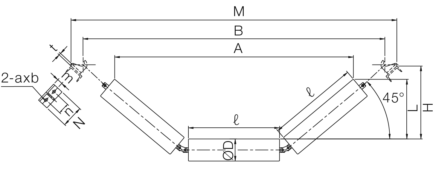 | Model | BW | ØD | ℓ | m | M | n | N | L | H | t | axb |