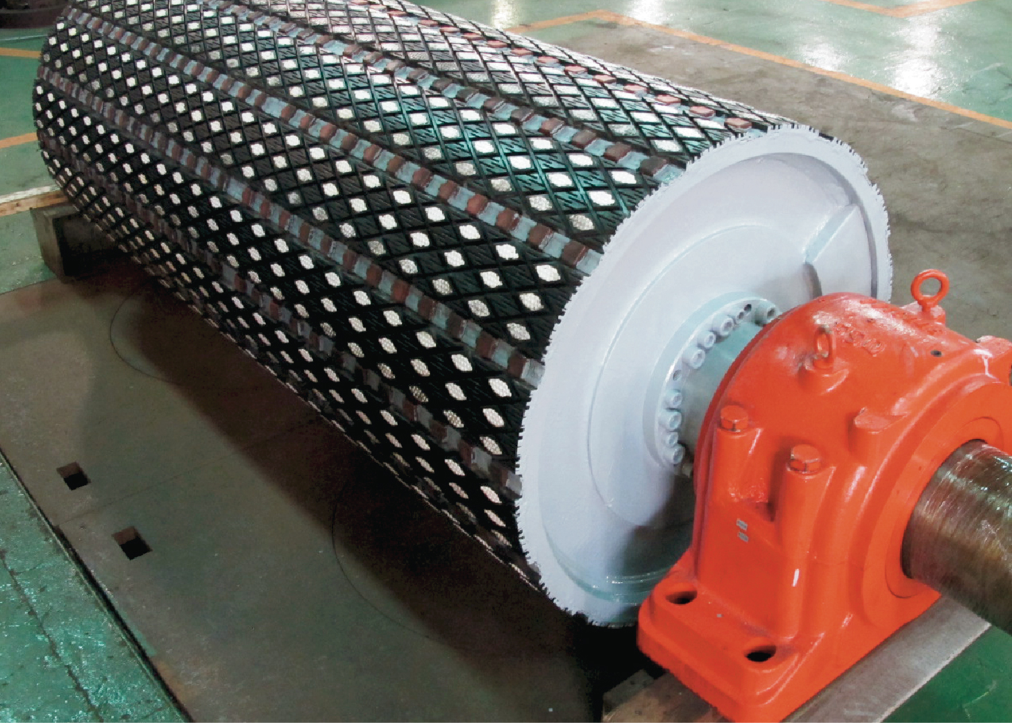 Diamond rubber and raised round ceramic replaceable laggings fit the curved surface for any pulley diameter.