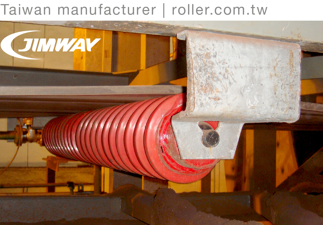 This self-cleaning roller has utilizing durable PU discs and operates in specific direction to limit belt wandering. Materials build-up on the rollers, which causing the belt to mistrack/flap and material spillage that the rollers fails prematurely. Jimway's maintenance-free spiral return roller reduces downtime due to less carryback or less belt mistracking. The non-stick properties of the PU material ensures that unwanted wet sticky material won't adhere the roller and extends the roller service life.