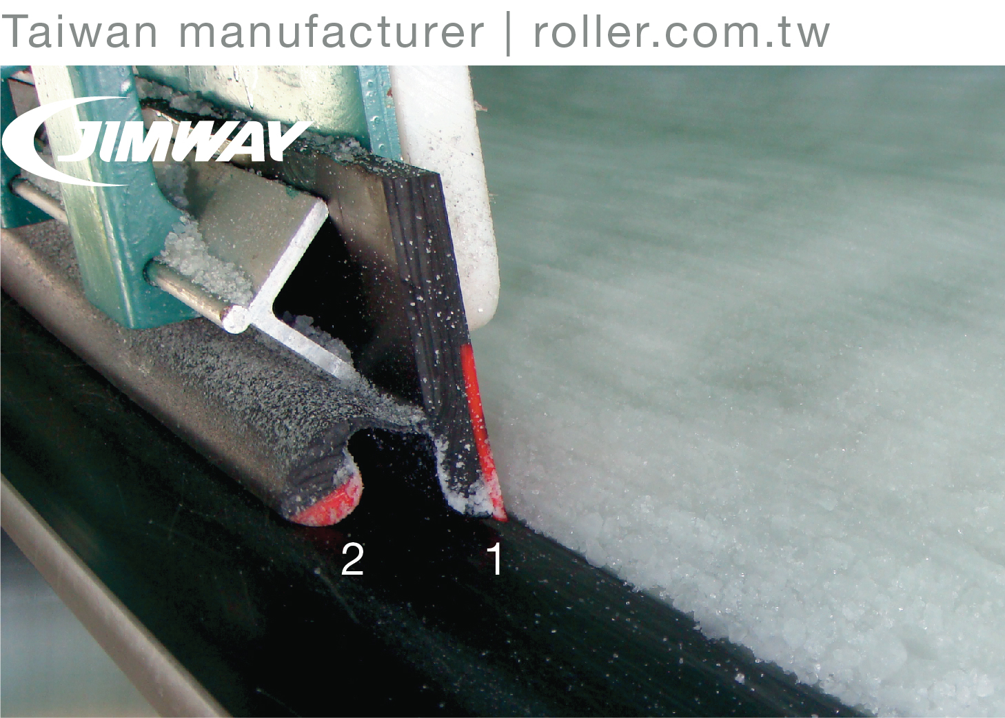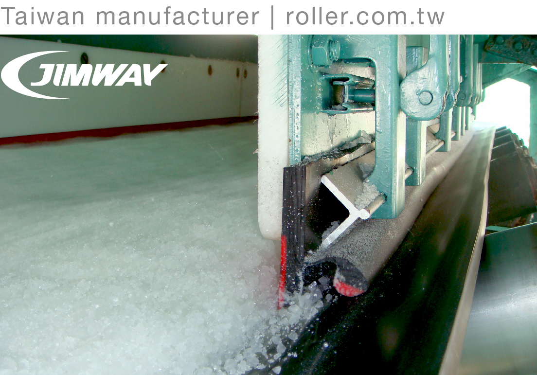 Jimway's Patented Skirt Rubber provides service lifetime expansion and an effective solution by preventing material spillage, dust leakage, and belt damage. The 1st layer keeps the 3~5mm distance from the belt preventing material spillage. The 2nd layer keeps proper contact pressure with the belt preventing dust leakage.