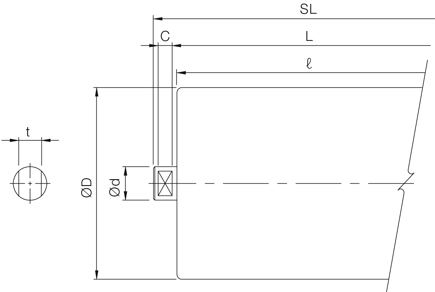 Model | BW | ØD | ℓ | L | SL | C | t | Ød | Bearing No. |